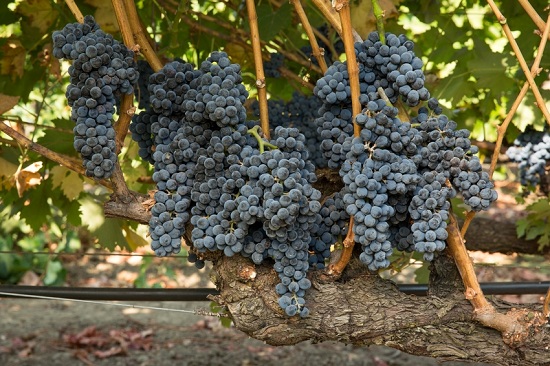 阿布鲁斯科的果实串呈金字塔状,果实中等大小,果皮厚,呈蓝黑色,果肉几乎无色。该品种生命力极为旺盛,对各种疾病的抵抗能力也极佳,成熟期适中。